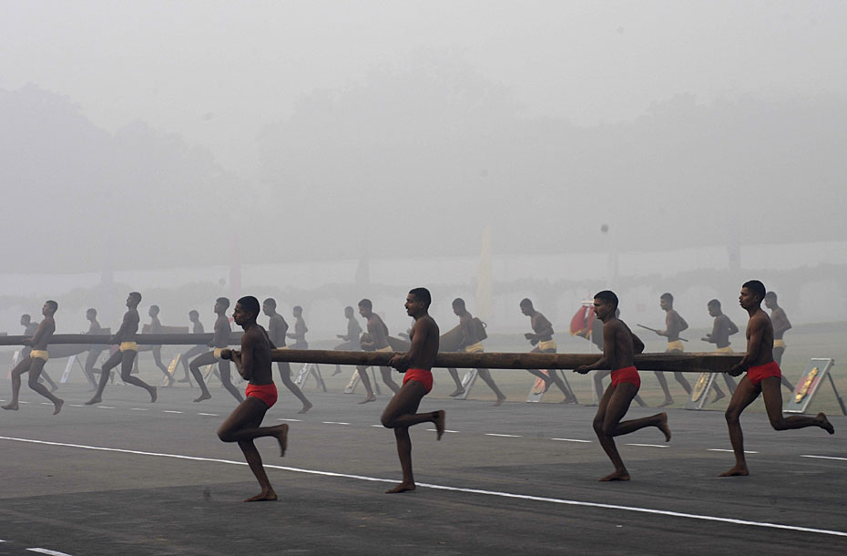 1月15日,在印度首都新德里舉行的建軍節(jié)閱兵式上,印度士兵接受檢閱。圖片來源:中國(guó)新聞網(wǎng)