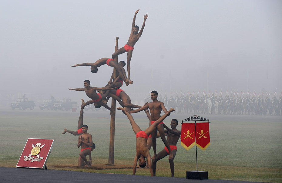 圖為印度陸軍人員正在表演節(jié)目。