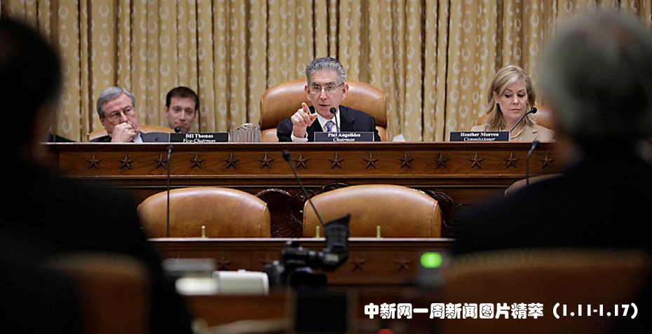 1月13日(周三),金融危機(jī)調(diào)查委員會(Financial Crisis Inquiry Commission)主席安吉利得斯(Phil Angelides,中)在國會山(Capitol Hill)一個聽證會上提問。在談及某個問題時,他將高盛集團(tuán)(Goldman Sachs)一位高管比作二手車推銷員。圖片來源:中國新聞網(wǎng)