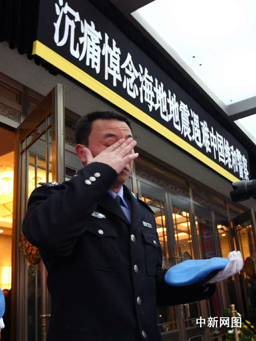 海地地震遇難中國維和警察遺體告別儀式1月20日上午9時(shí)在北京八寶山殯儀館大禮堂舉行。圖片來源:中國新聞網(wǎng)