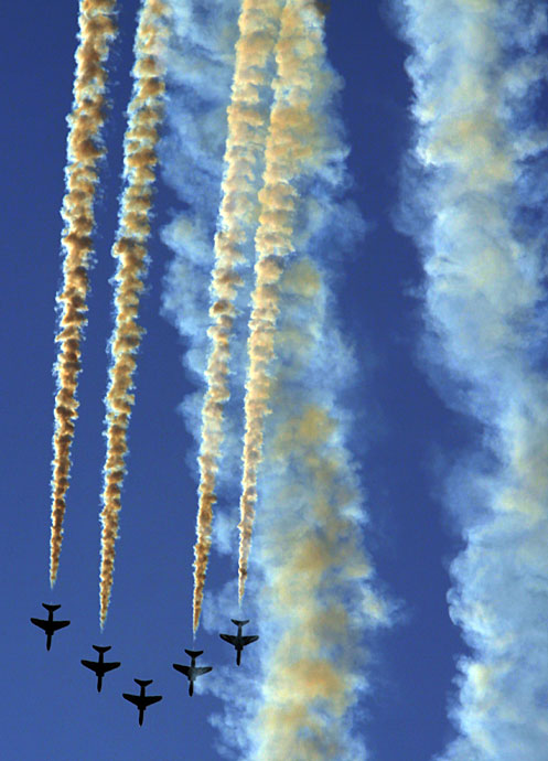 1月21日,巴林國際航空展在毗鄰巴林F1賽場的SAKHIR空軍基地開幕。在開幕式上,飛行表演隊(duì)舉行了異彩紛呈的飛行表演。圖片來源:中國新聞網(wǎng)