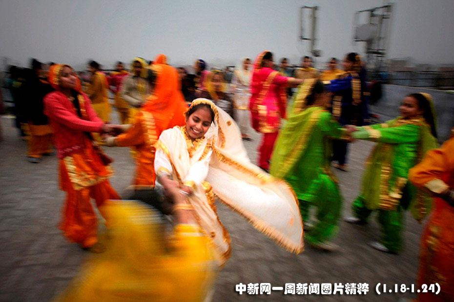 1月19日,印度阿姆利則一群女學(xué)生在印度春節(jié)前夜跳著傳統(tǒng)舞蹈。圖片來源:中國(guó)新聞網(wǎng)