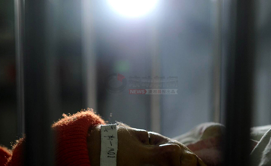 1月18日,一束燈光照在病床上,小振和沐浴在溫暖的燈光下,很安靜。瀟湘晨報(bào) 記者 楊抒懷 攝