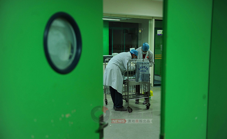 1月18日下午6點(diǎn)32分,在小振和去世后1小時(shí)內(nèi),眼庫工作人員到湖南省兒童醫(yī)院病房,在對(duì)著小小的遺體三鞠躬后,取出了眼角膜。瀟湘晨報(bào) 記者 楊抒懷 攝