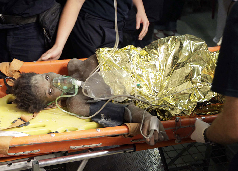 2010年1月27日,海地太子港,法國救援人員在一棟房屋的廢墟下救出被困15天的16歲女孩黛琳娜·艾提尼(Daline Etienne)。女孩微弱的話語讓大家著實吃驚:她竟是憑著隨身的可樂挺了過來。圖片來源:中國新聞網(wǎng)