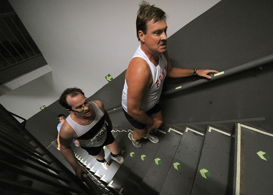 2月2日,一年一度的爬樓梯大賽在美國(guó)紐約帝國(guó)大廈舉行。數(shù)百名選手參加了第33屆帝國(guó)大廈爬樓梯大賽。帝國(guó)大廈有86層、1576級(jí)臺(tái)階。圖片來源:中國(guó)新聞網(wǎng)