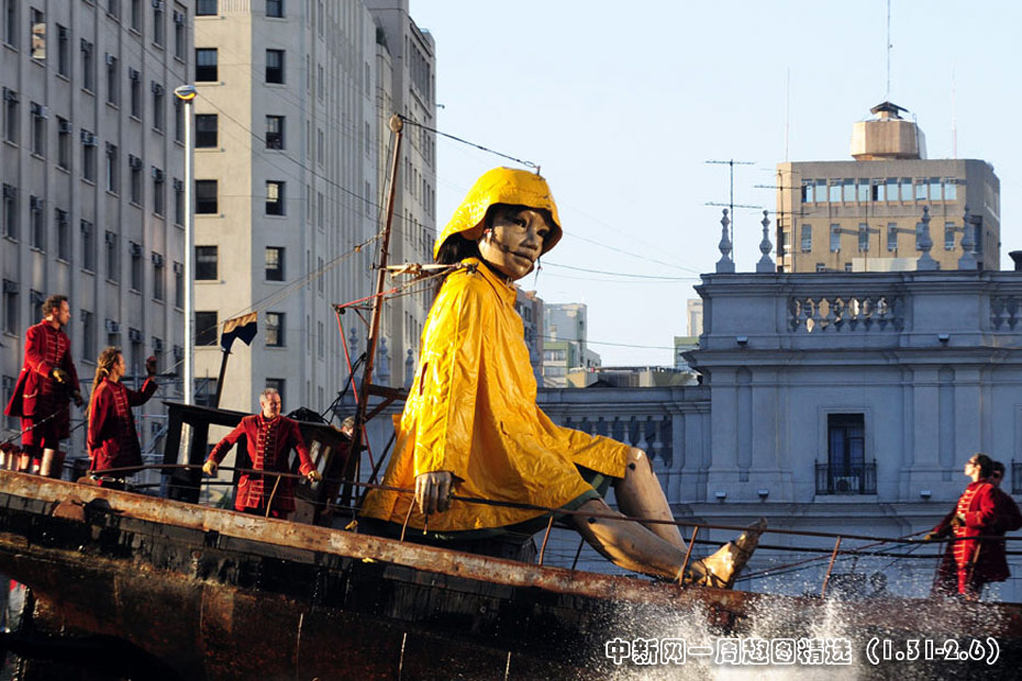 近日,智利首都圣地亞哥街頭,法國一劇團(tuán)攜巨型提線木偶“小巨人”上街表演,它惟妙惟肖的表情和逼真的神態(tài)引得周圍觀眾的陣陣掌聲。圖片來源:中國新聞網(wǎng)>>點(diǎn)擊觀看詳細(xì)內(nèi)容