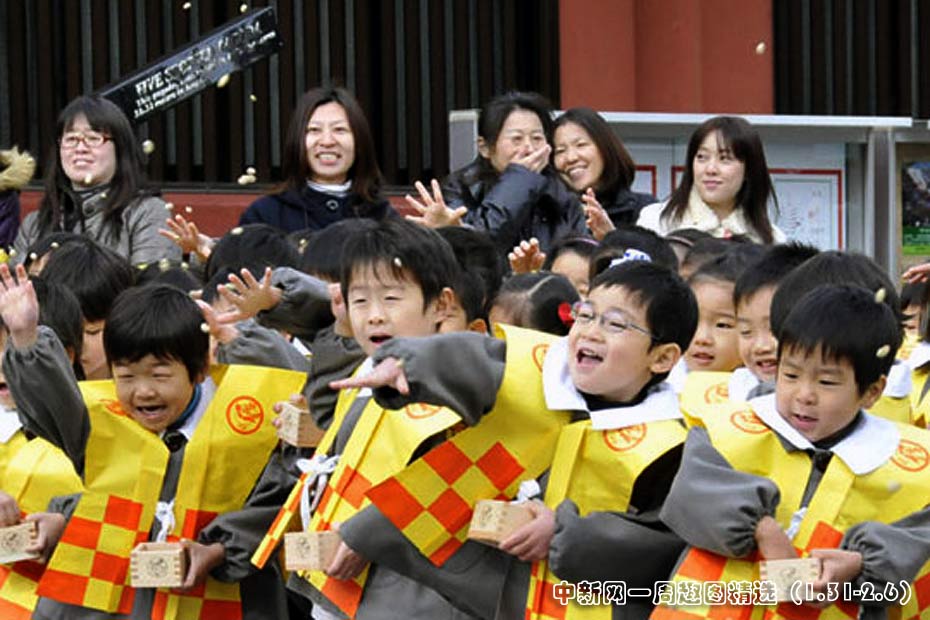 2月3日,日本首都東京,幼兒園小朋友們在“節(jié)分”的撒豆驅(qū)邪儀式上投擲大豆。圖片來源:中國新聞網(wǎng)>>點(diǎn)擊觀看詳細(xì)內(nèi)容