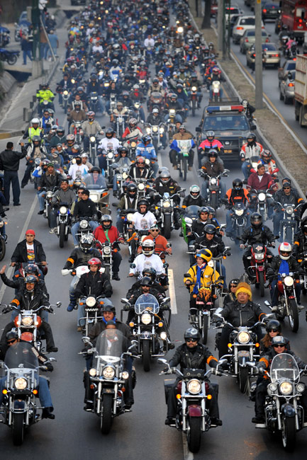 當(dāng)?shù)貢r(shí)間2月6日,在危地馬拉首都危地馬拉城,大約30000名摩托車手駕駛著機(jī)車在街頭游行。圖片來源:中國(guó)新聞網(wǎng)