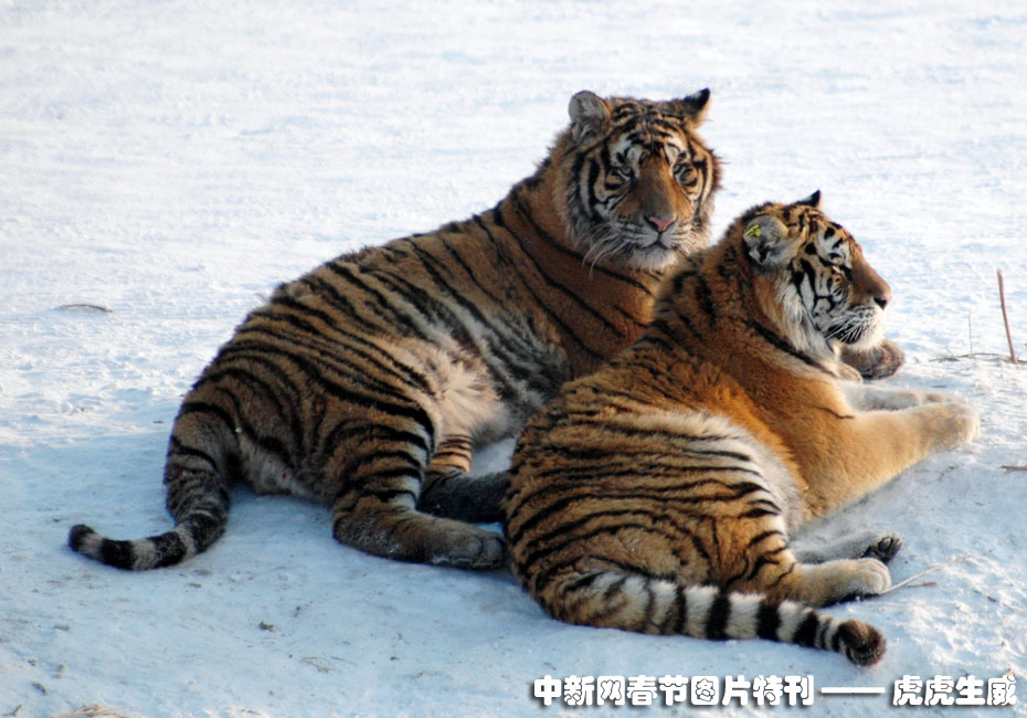 1月13日,黑龍江東北虎林園,老虎在雪地中嬉戲追逐。(王少華 張書儉 攝) 圖片來(lái)源:中國(guó)新聞網(wǎng)
