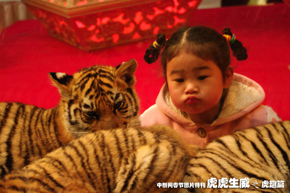 1月30日,虎年將至,重慶某商廈開(kāi)展野生動(dòng)物保護(hù)法宣傳,“請(qǐng)”來(lái)幾只活潑可愛(ài)的小老虎與市民近距離接觸,人見(jiàn)人愛(ài)。中新社發(fā) 金城 攝