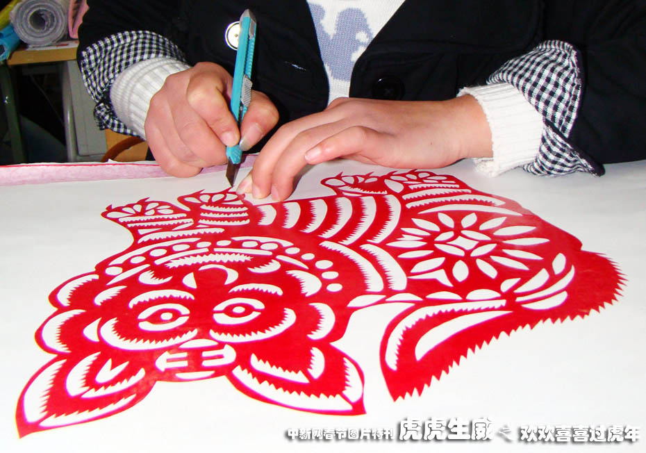 12月21日,重慶市云陽教師進修學(xué)院08級幼教班的學(xué)生在利用美術(shù)課“剪老虎”。中新社發(fā) 饒國君 攝