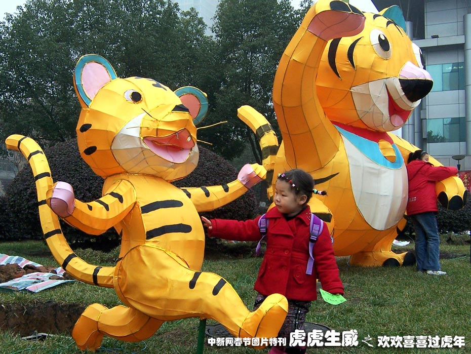 2月7日,10座“卡通虎燈”亮相江蘇省南京市街頭,為即將到來(lái)的新春佳節(jié)增添了喜氣。這批“卡通虎燈”由江蘇省揚(yáng)州市民間藝人制作,造型各異,憨態(tài)可掬,吸引了眾多小朋友的喜愛。中新社發(fā) 安東 攝