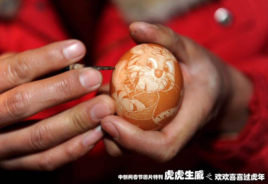 1月12日,家住合肥市瑤海區(qū)化南社區(qū)的火車司機王劍正在進行“蛋雕虎”創(chuàng)作。上海鐵路局合肥機務(wù)段的火車司機王劍,從小酷愛美術(shù),業(yè)余從事蛋雕雕刻10余年,隨著農(nóng)歷虎年臨近,他以雞蛋殼為原料創(chuàng)作出一系列造型多樣,栩栩如生的“蛋雕虎”作品,以此表達對虎年的美好期望與祝福。中新社發(fā) 解琛 攝