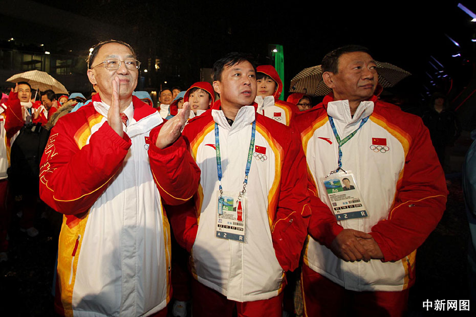 圖為中國代表團(tuán)團(tuán)長劉鵬(左)等參加升旗儀式。