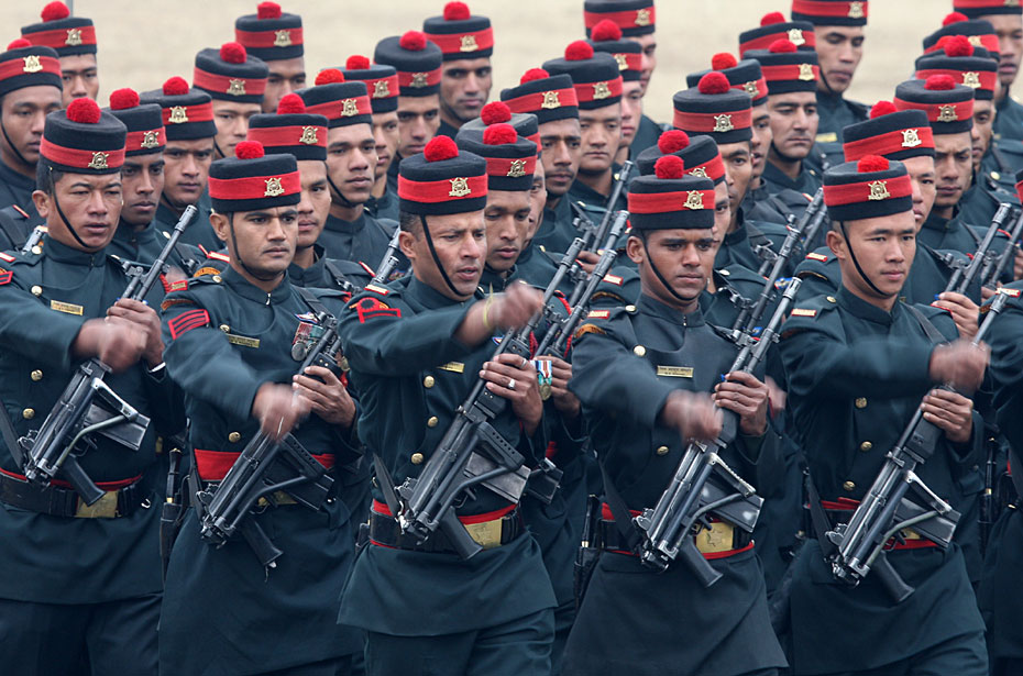 當(dāng)?shù)貢r(shí)間2月12日,尼泊爾士兵在首都加德滿都舉行了建軍節(jié)閱兵式。尼泊爾總統(tǒng)和總參謀長(zhǎng)檢閱了受閱部隊(duì)。圖片來(lái)源:中國(guó)新聞網(wǎng)