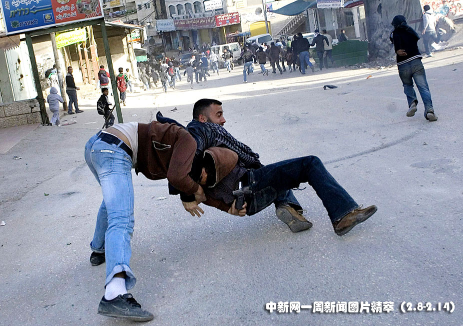 周二(9日)在耶路撒冷東部的難民營,一個巴勒斯坦暴亂分子(左)與一名以色列便衣警察扭打在一起。