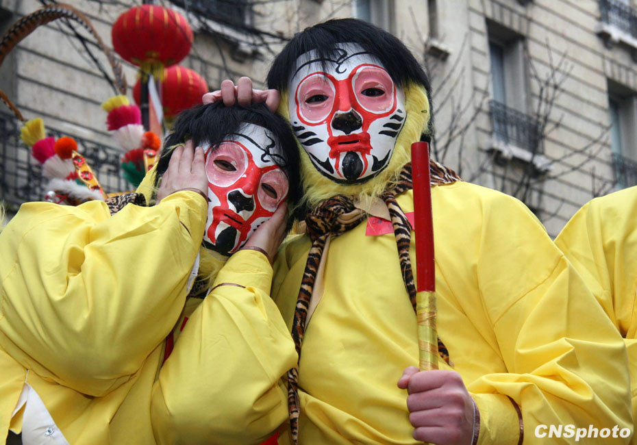 法國巴黎著名的“唐人街”——十三區(qū)21日下午舉行虎年春節(jié)華人嘉年華大游行,給這個(gè)有著顯著中國傳統(tǒng)文化特色的華人聚居區(qū)帶來了歡樂與喜氣。圖為游行隊(duì)伍中的孫悟空造型。中新社發(fā) 吳衛(wèi)中 攝