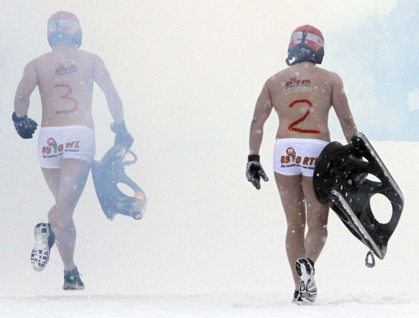 近日,在德國(guó)北部小鎮(zhèn)舉行了一場(chǎng)別開生面的滑雪大賽,參賽者在冰天雪地中赤裸著上身在滑雪板上滑行。超過(guò)一萬(wàn)名觀眾觀看了比賽。