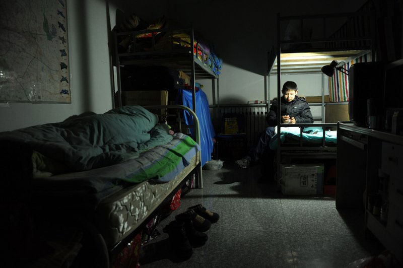 圖為回到媽媽朋友幫忙的房間內(nèi),姥姥已經(jīng)入睡,邵帥開著臺(tái)燈整理著東西。朱嘉磊/CFP