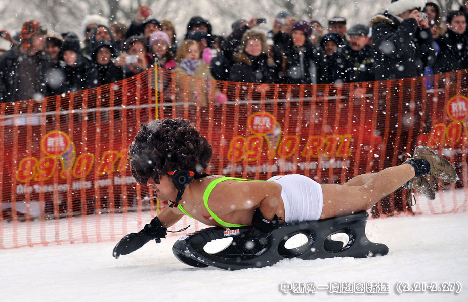 在德國北部小鎮(zhèn)舉行了一場別開生面的滑雪大賽,參賽者在冰天雪地中赤裸著上身在滑雪板上滑行。圖片來源:中國新聞網(wǎng)>>點(diǎn)擊觀看詳細(xì)內(nèi)容