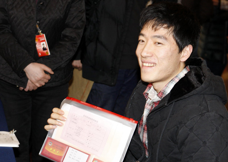 3月2日,參加全國政協(xié)的委員劉翔趕赴北京國際飯店報到。新宇 攝