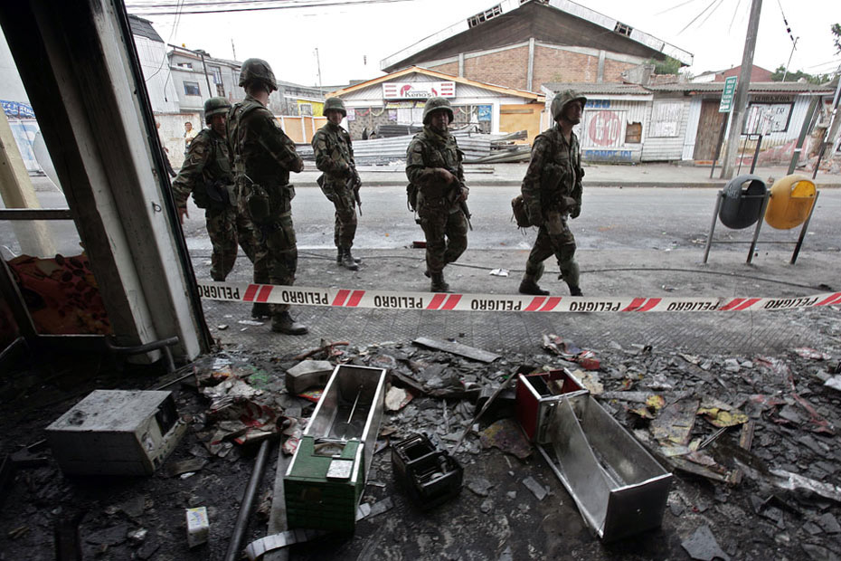 智利士兵進(jìn)駐災(zāi)區(qū) 搶劫現(xiàn)象得到控制
