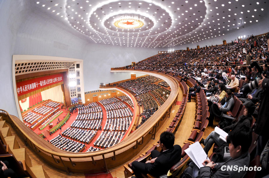 3月5日上午9時(shí),十一屆全國(guó)人大三次會(huì)議在北京隆重開(kāi)幕。國(guó)務(wù)院總理溫家寶作政府工作報(bào)告。圖片來(lái)源:中國(guó)新聞網(wǎng)