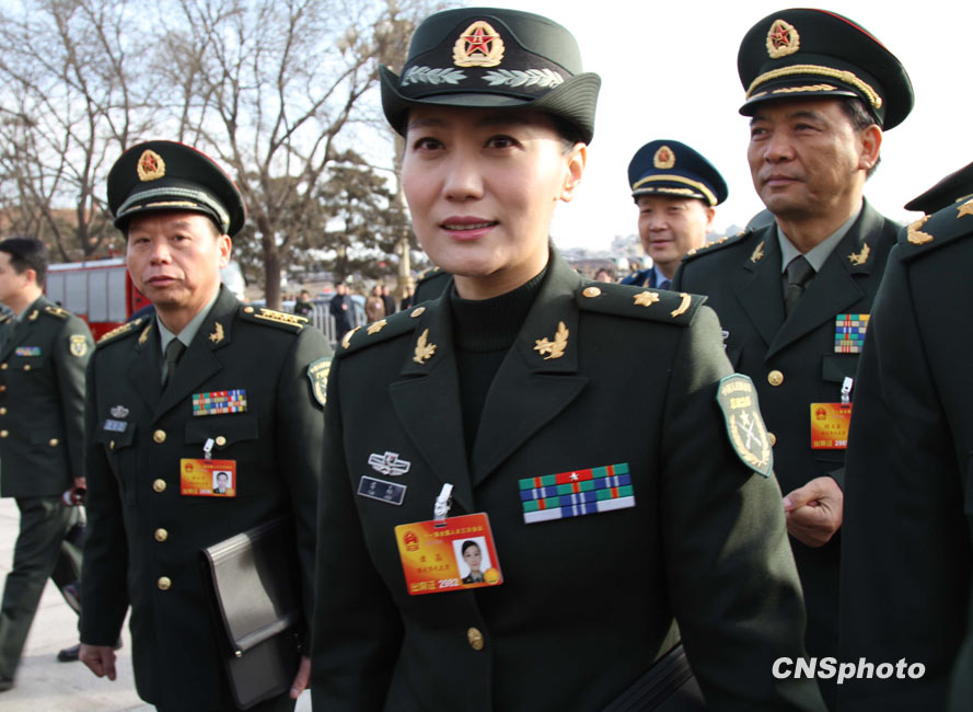 3月5日上午9時(shí),十一屆全國人大三次會(huì)議在北京隆重開幕。國務(wù)院總理溫家寶作政府工作報(bào)告。圖為來自解放軍代表團(tuán)的青年歌唱家譚晶步入會(huì)場。中新社發(fā) 韓蘇原 攝