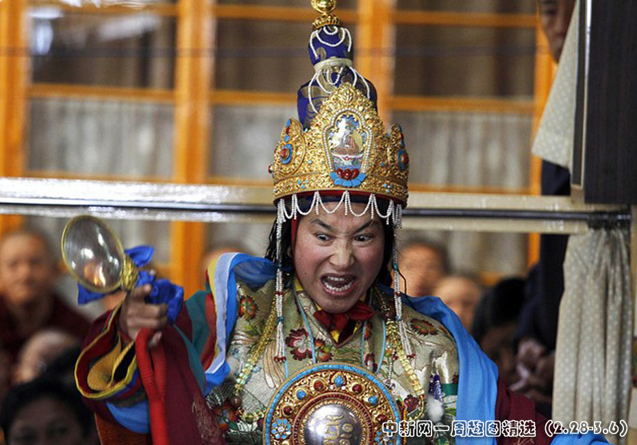 3月2日,在印度達蘭薩拉,西藏神使慈仁敬安正在進行降神儀式。圖片來源:中國新聞網(wǎng)>>點擊觀看詳細內(nèi)容