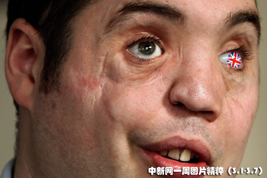 3月1日,威廉王子訪問了威爾士蘭迪德諾的一所康復(fù)中心。現(xiàn)年31歲的西蒙•布朗戴上裝飾有英國(guó)國(guó)旗的假眼歡迎威廉王子。西蒙在2006年的伊拉克巴士拉服兵役期間被狙擊手擊瞎了左眼。圖片來(lái)源:中國(guó)新聞網(wǎng)