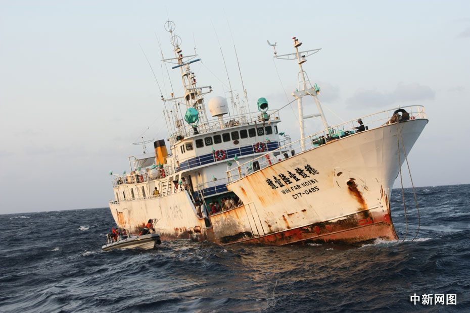 09年4月在西印度洋遭索馬里海盜挾持的臺灣遠(yuǎn)洋漁船“穩(wěn)發(fā)161號”,歷經(jīng)各方營救,終于在遭挾持10個多月后,包括船長顏勝男等共28人返回高雄港。圖片來源:中國新聞網(wǎng)