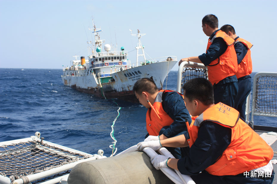 大陸海軍護航艦艇接護臺灣漁船