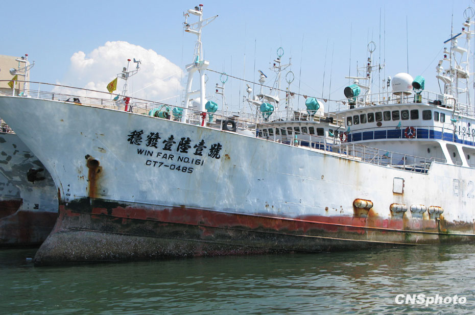 09年4月在西印度洋遭索馬里海盜挾持的臺灣遠(yuǎn)洋漁船“穩(wěn)發(fā)161號”,歷經(jīng)各方營救,終于在遭挾持10個多月后,包括船長顏勝男等共28人返回高雄港。圖片來源:中國新聞網(wǎng)