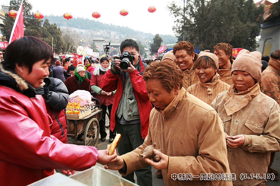3月7日,一群“泥人”在河南浚縣廟會上自制泥玩具并將與現(xiàn)場商販交換商品。這次“大地上的人”藝術(shù)活動是“王剛——老萬系列作品”的第五次行為藝術(shù)活動!袄先f”代表“千千萬萬”。本次活動的主題從關(guān)注農(nóng)民工擴(kuò)展到了關(guān)注人類的生存與發(fā)展。圖片來源:中國新聞網(wǎng)>>點(diǎn)擊觀看詳細(xì)內(nèi)容