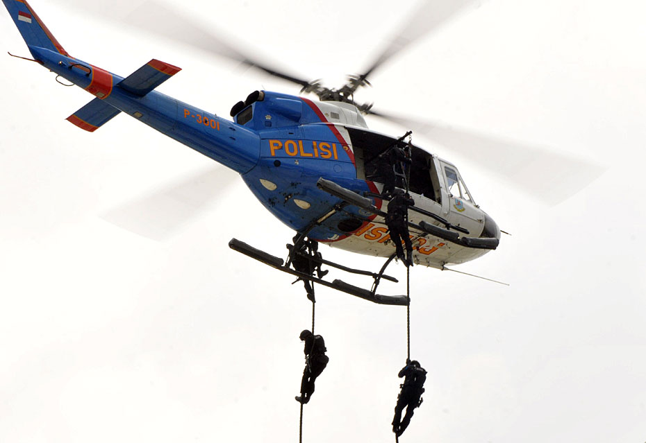 3月13日,印尼警方在首都雅加達(dá)的證券交易所舉行了一場(chǎng)反恐演習(xí),為本月底即將到訪(fǎng)印尼的美國(guó)總統(tǒng)奧巴馬創(chuàng)造安全的環(huán)境。圖片來(lái)源:中國(guó)新聞網(wǎng)