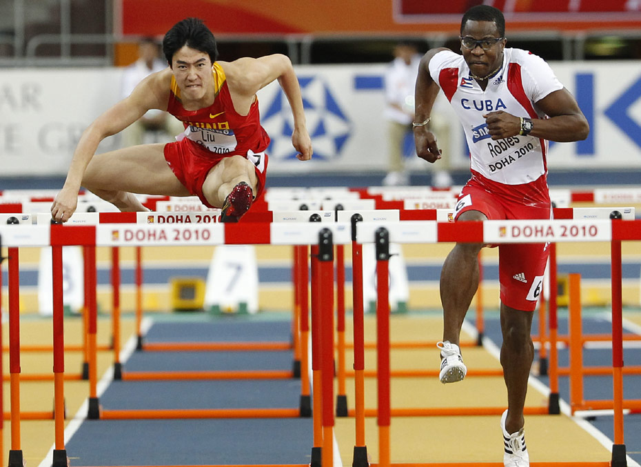在14日晚間結(jié)束的多哈室內(nèi)田徑世錦賽60米欄決賽中,劉翔僅僅以7秒65的成績(jī)獲得第七名。古巴選手羅伯斯則以7秒34成績(jī)奪得冠軍并打破室內(nèi)世錦賽賽會(huì)紀(jì)錄。圖片來源:中國(guó)新聞網(wǎng)