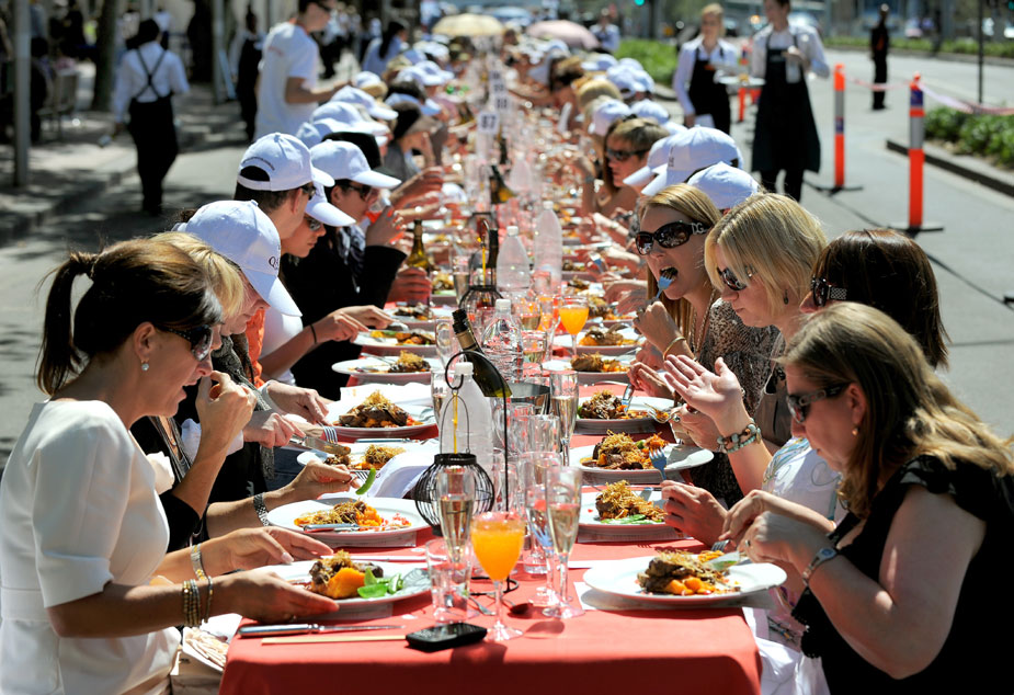 近日,澳大利亞墨爾本,人們?cè)谔?hào)稱“世界上最長的午餐”活動(dòng)中享受美味佳肴。圖片來源:中國新聞網(wǎng)