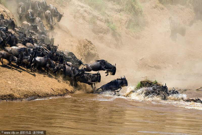 3月17日消息,捷克野生動(dòng)物攝影師瓦拉夫·希爾哈(Vaclav Silha)在肯尼亞馬賽瑪拉(Masai Mara)國家保護(hù)區(qū)拍到了罕見的牛羚大遷移場面。上百萬牛羚集體穿越馬拉河,同時(shí)為了防止被水中的鱷魚咬到及逃避岸邊叢林里的老虎,牛羚群制造出巨大的聲響并急沖到對岸。barcroftmedia/CFP