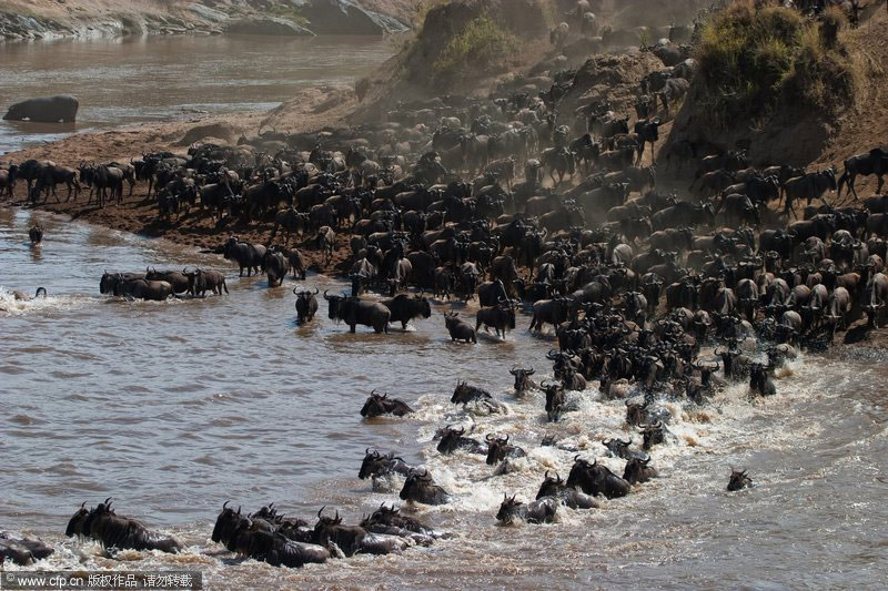 3月17日消息,捷克野生動(dòng)物攝影師瓦拉夫·希爾哈(Vaclav Silha)在肯尼亞馬賽瑪拉(Masai Mara)國家保護(hù)區(qū)拍到了罕見的牛羚大遷移場面。上百萬牛羚集體穿越馬拉河,同時(shí)為了防止被水中的鱷魚咬到及逃避岸邊叢林里的老虎,牛羚群制造出巨大的聲響并急沖到對(duì)岸。barcroftmedia/CFP