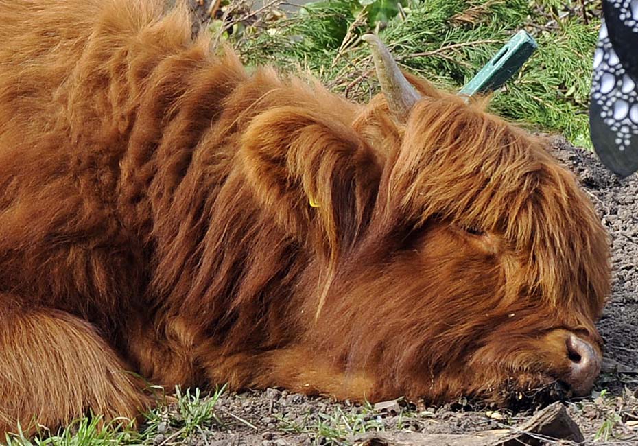 3月18日,德國一頭蘇格蘭高地牛來到一居民院內(nèi)懶洋洋的曬太陽,最后經(jīng)過獸醫(yī)的麻醉和消防員協(xié)力才將這頭蠻力十足的家伙“制服”。圖片來源:中國新聞網(wǎng)