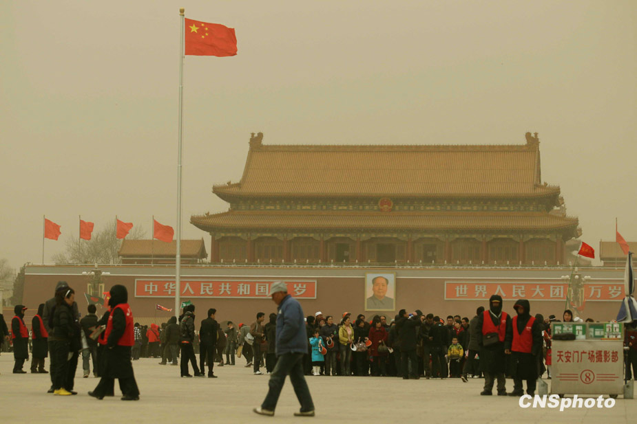 3月20日,春季首場重度浮塵天遮蓋了整個北京城。圖片來源:中國新聞網(wǎng)