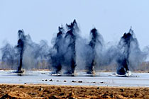 3月21日,冰島首都雷克雅未克東南方向的埃亞菲亞德拉冰蓋冰川,熔巖從火山口噴出。 這座火山于20日午夜前后就開始噴發(fā)。
