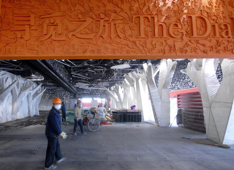 3月25日,中國上海世博會(huì)“中國館”布展近尾聲。