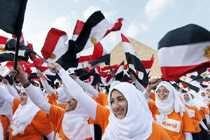 數(shù)千兒童金字塔前揮旗