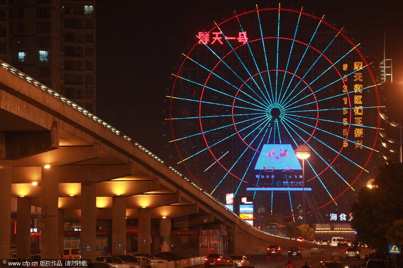 03月27日, 長(zhǎng)沙,芙蓉中路的標(biāo)志性建筑亞洲第一高摩天輪(熄燈前)。赤兔/CFP