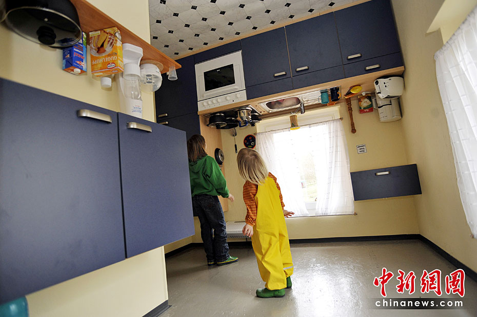 3月30日,德國蓋托夫市“瘋狂的房子”面向公眾開放。該房屋整個(gè)顛倒里面的家具也是被釘在屋頂上的。圖片來源:中國新聞網(wǎng)