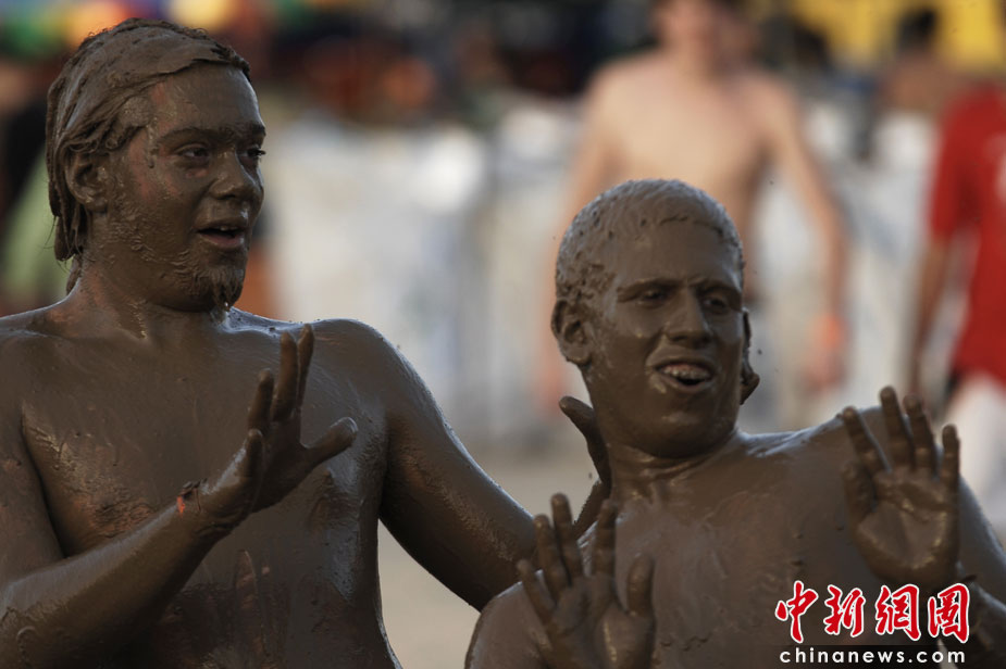 當(dāng)?shù)貢r間4月1日,以色列南部的海灘上,眾多年輕人在泥漿中盡情玩耍,慶祝為期三天的逾越節(jié)。圖片來源:中國新聞網(wǎng)
