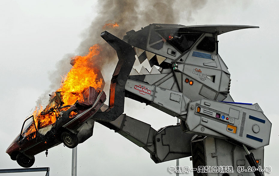 3月30日,一款重約27噸的機(jī)器怪獸在澳大利亞悉尼瞬間將一臺汽車摧毀。據(jù)悉,該款機(jī)器怪獸是由30多個公司花了兩年時間研究出來的。圖片來源:中國新聞網(wǎng)>>點擊觀看詳細(xì)內(nèi)容