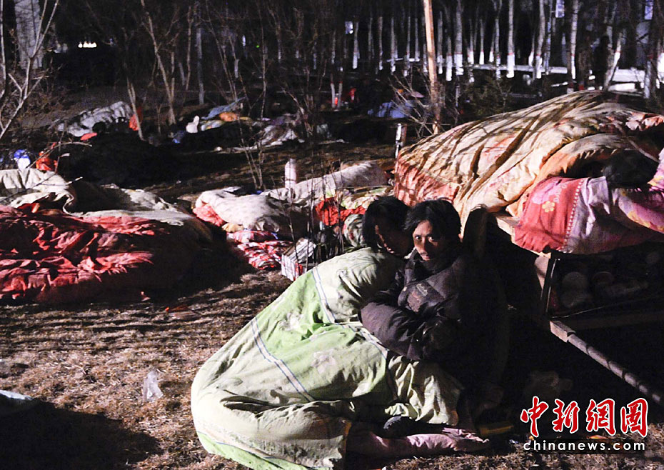 圖為4月15日凌晨,青海玉樹地震受災(zāi)民眾在露天休息。中新社發(fā) 廖攀 攝